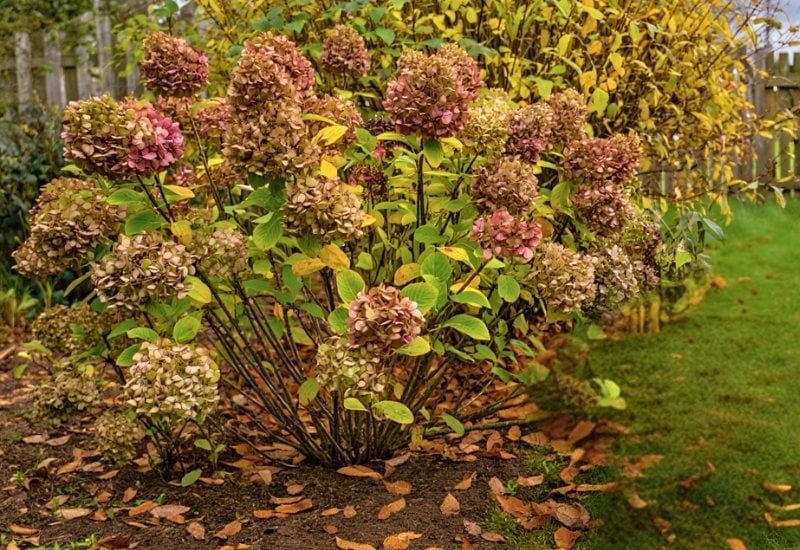 Those brown, dried-up flower heads might look messy to you, but they’re actually performing a vital service by shielding the tender buds below them from wind and frost. Think of them as nature’s ugly little umbrellas.